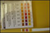 Jetzt messen wir sicherheitshalber den PH Wert, den idealerweise bei 3 liegen sollte. Unsere Maische liegt bei 3,5 und die Abweichunmg können wir tolerieren. Wir geben also keine Säure zu und vergären eine unverfälschte naturreine Fruchtmaische. |