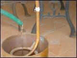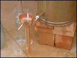Jetzt können Sie die Destille anheizen, komplett alle Teile zusammensetzen, abdichten und Kühlwasser auffüllen. Wir dichten hier mit Teflonband, einfach weil es so schnell geht und praktisch ist. |